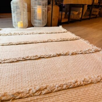 Camino de tela tusor de 1,5 mts con borla de algodon blanco o rosa