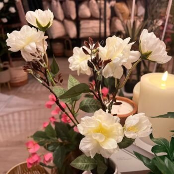 Planta artificial arbol de flores rosas estilo Santa Rita de 80 cm en maceta