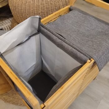 - Canasto doble para lavadero bambu con tela gris $154.780