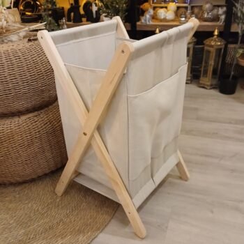 3 cuotas s/interés de $22653 -20℅ off en efectivo $54368Canasto plegable para ropa de madera con tela.