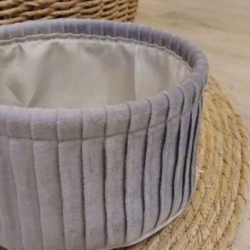 3 cuotas s/interés de $1933 -20℅ off en efectivo $4640Cesto organizador de pana gris con pliegues redondo chico.