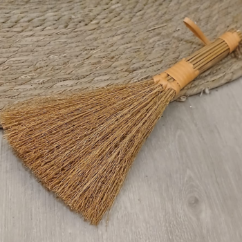 - Escoba chica de paja y mimbre decorativa de 25 cm $9.900
