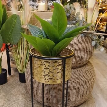 3 cuotas s/interés de $10627 -20℅ off en efectivo $25504Porta maceta de metal dorado con base negra chica de 20 x 33 cm