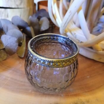 3 cuotas s/interés de $1363 -20℅ off en efectivo $3272Posa vela de vidrio tipo bombé labrado gris metalizado de 6 x 6 x 5 cm