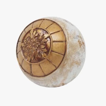3 cuotas s/interés de $2413 -20℅ off en efectivo $5792Esfera de resina color blanco y dorado labrada decorativa 7,5 cm.