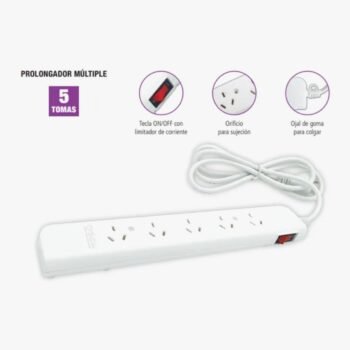- Zapatilla con 5 tomas con tecla de encendido y 1,5 mts de cable $12.730