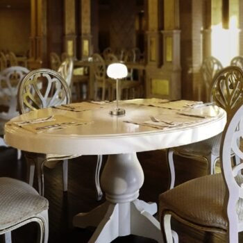 - Velador luz de mesa modelo Imola con pantalla redonda de hilos