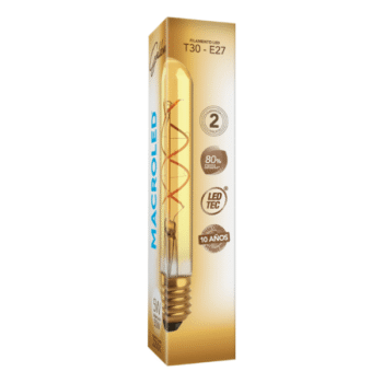 - Lampara Filamento Led Tubo T30 Golden 2W Luz Calida Equivalencia 20W Macroled $11.340