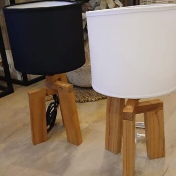 - Velador de mesa estilo nordico de madera con pantallas en negro o banco $48.000