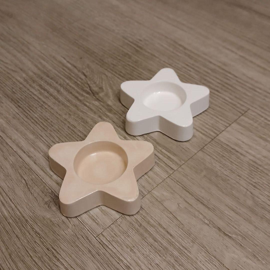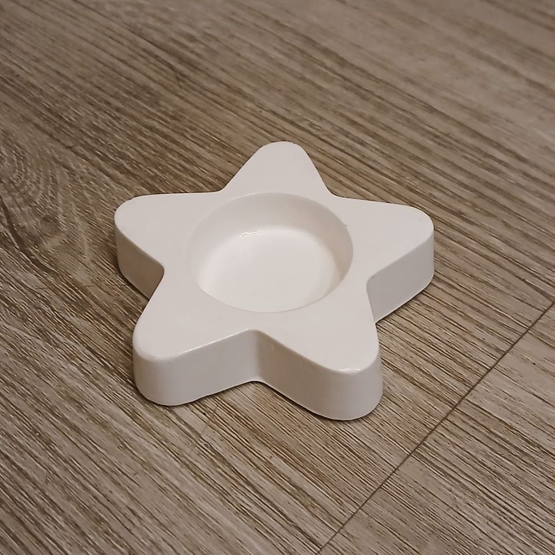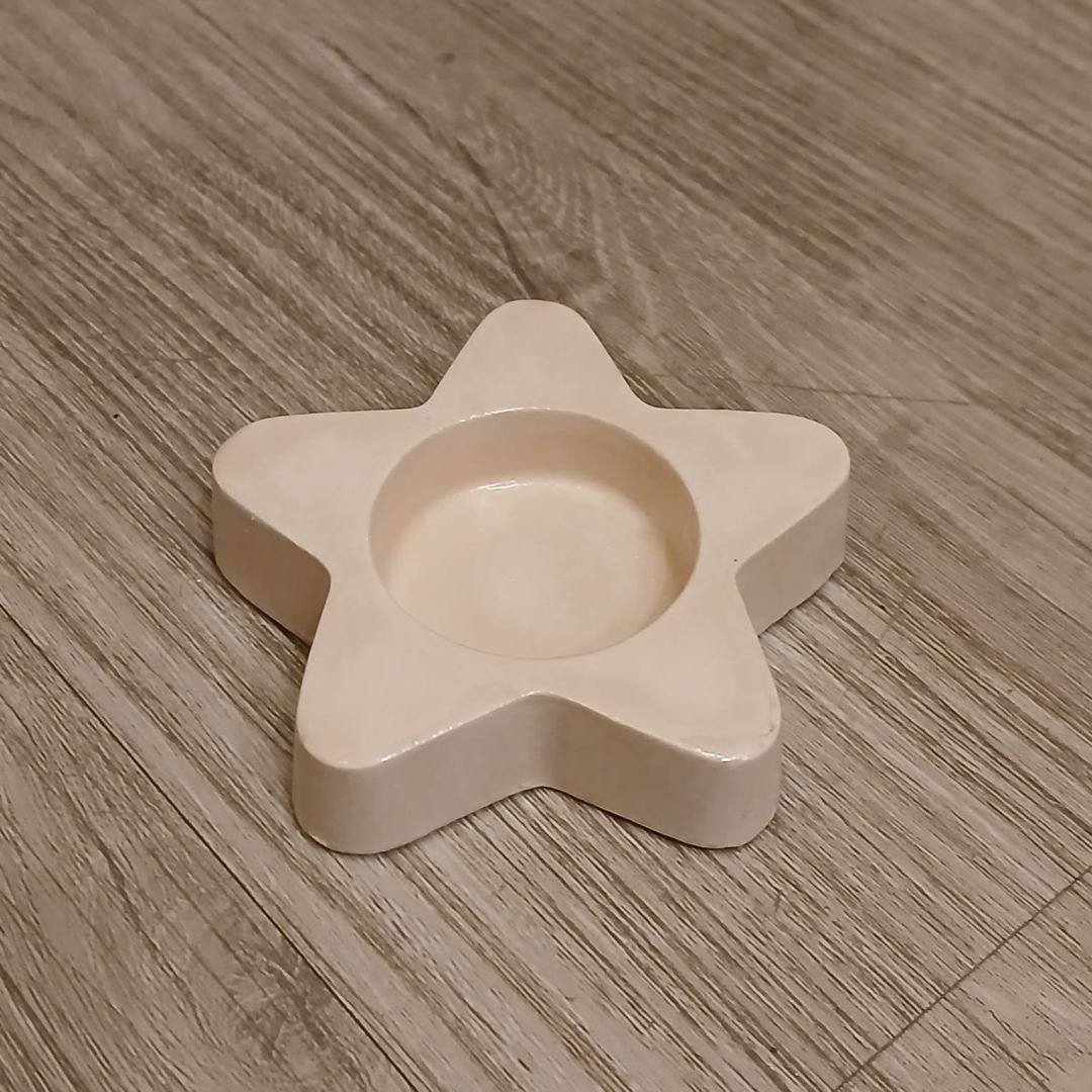 Porta vela de cemento pintado con forma de estrella