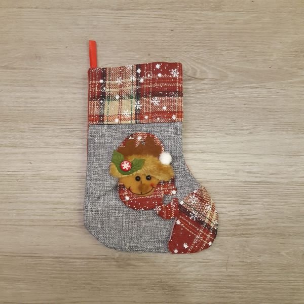 Adorno colgante bota de navidad de tela combinadas en beige, gris y rojo