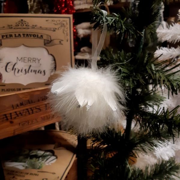 Adorno de navidad para colgar de plumas blancas 11 x 9 cm