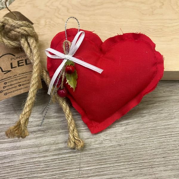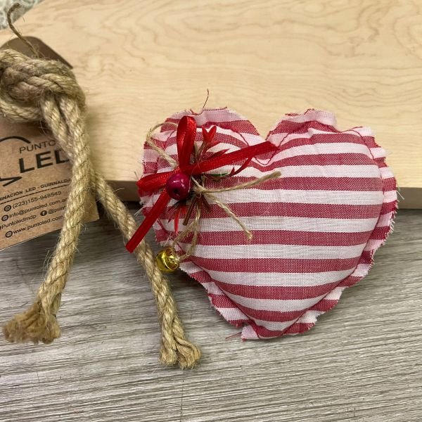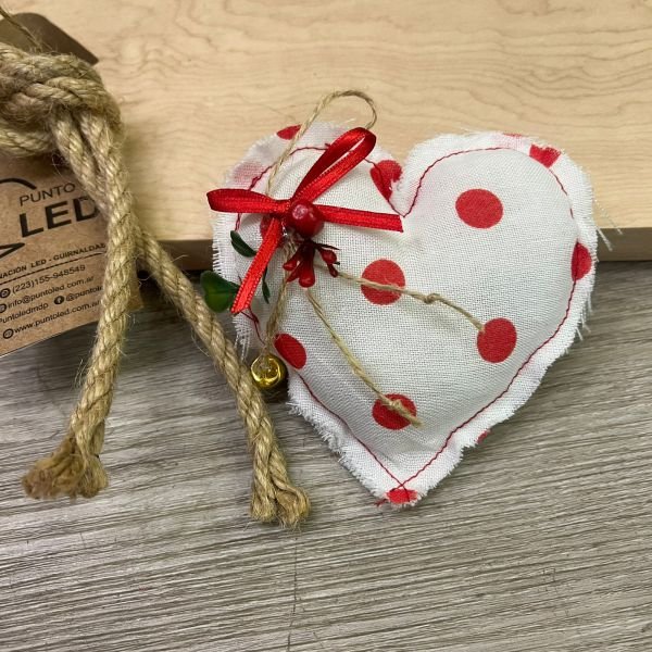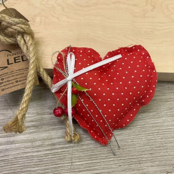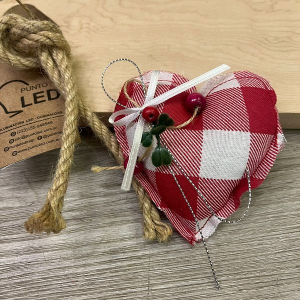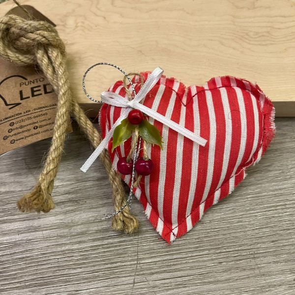 Adorno navideño artesanal de telas en forma de corazón en varias combinaciones