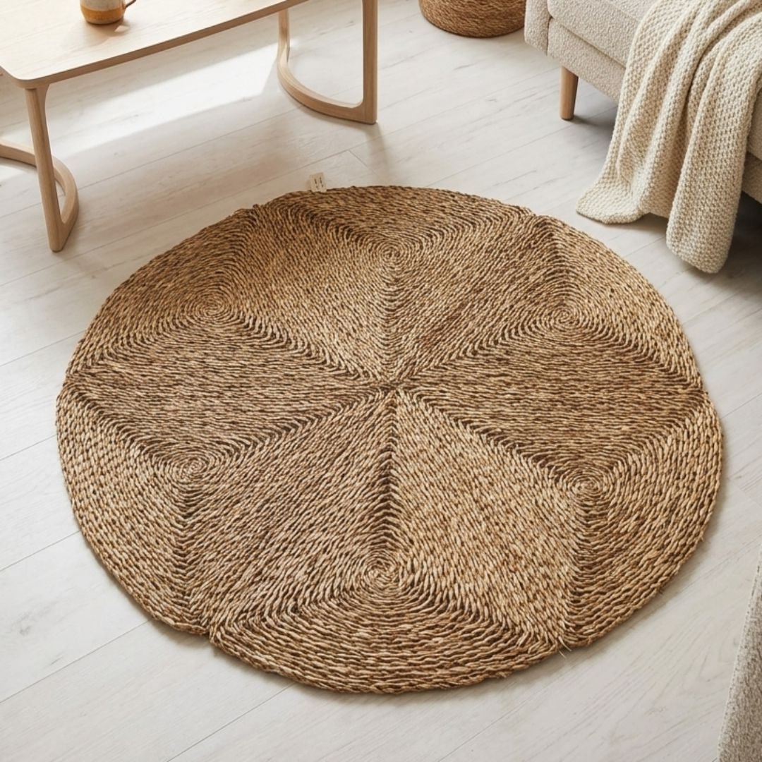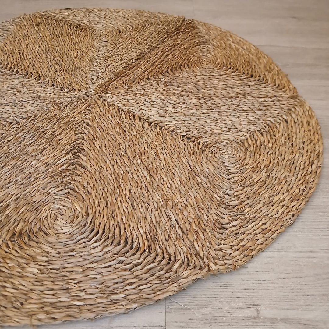 Canasto de seagrass de 50 x 15 cm de alto con estructura flexible, tramado en red con asas.