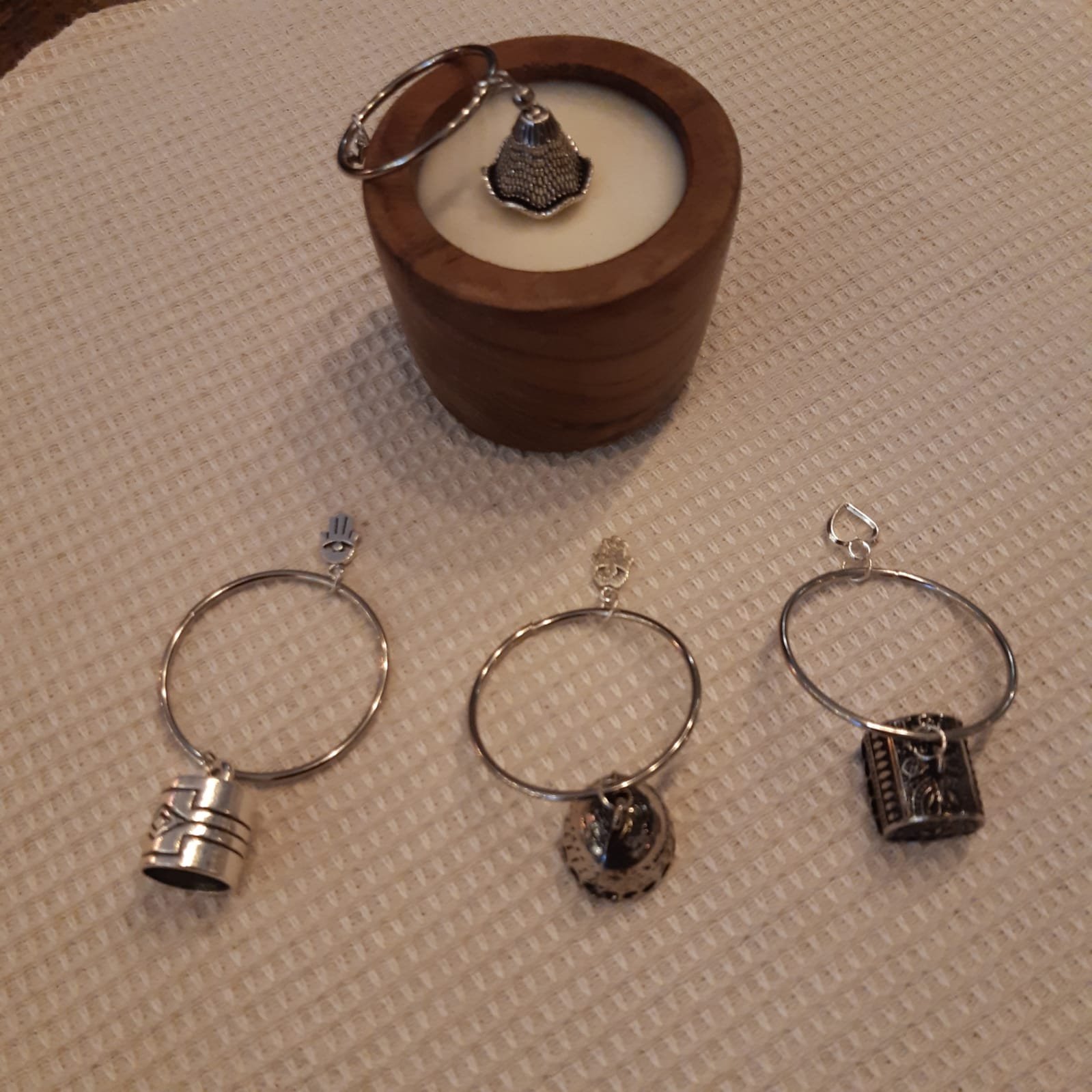 Apaga vela de metal con dije y argolla varios diseños