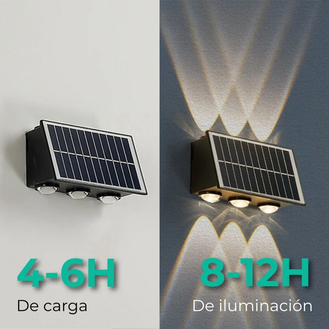 Aplique de pared bidireccional de 6 lamparas Led calidas para exterior recargable solar