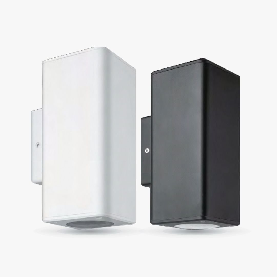 Aplique de pared cuadrado para exterior bidireccional para 2 dicroicas led – Macroled