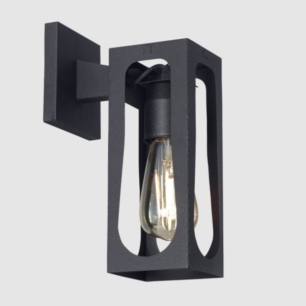 Aplique Pared Tipo Jaula Modelo Porto Color Negro Texturado Ferrolux