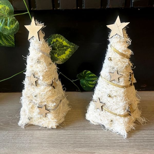 Arbol de navidad de hilos de algodon y perlas con cintas de 20 cm de altura