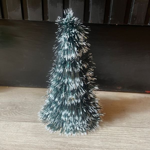 Arbol pino de navidad nevado de plástico de 15 x 27 cm