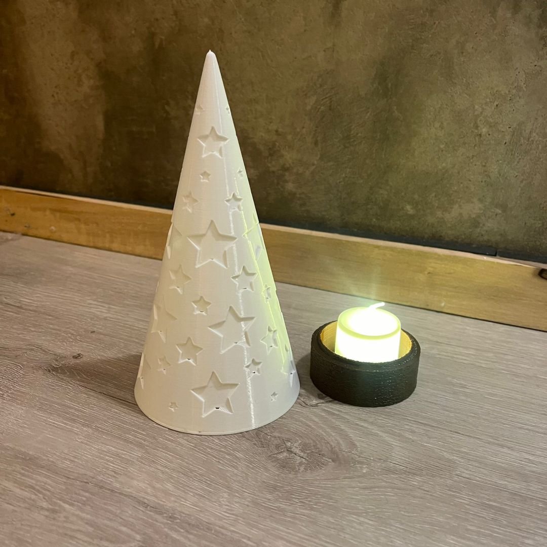 Arbolito de navidad color blanco elaborado en impresora 3D con base posa vela.