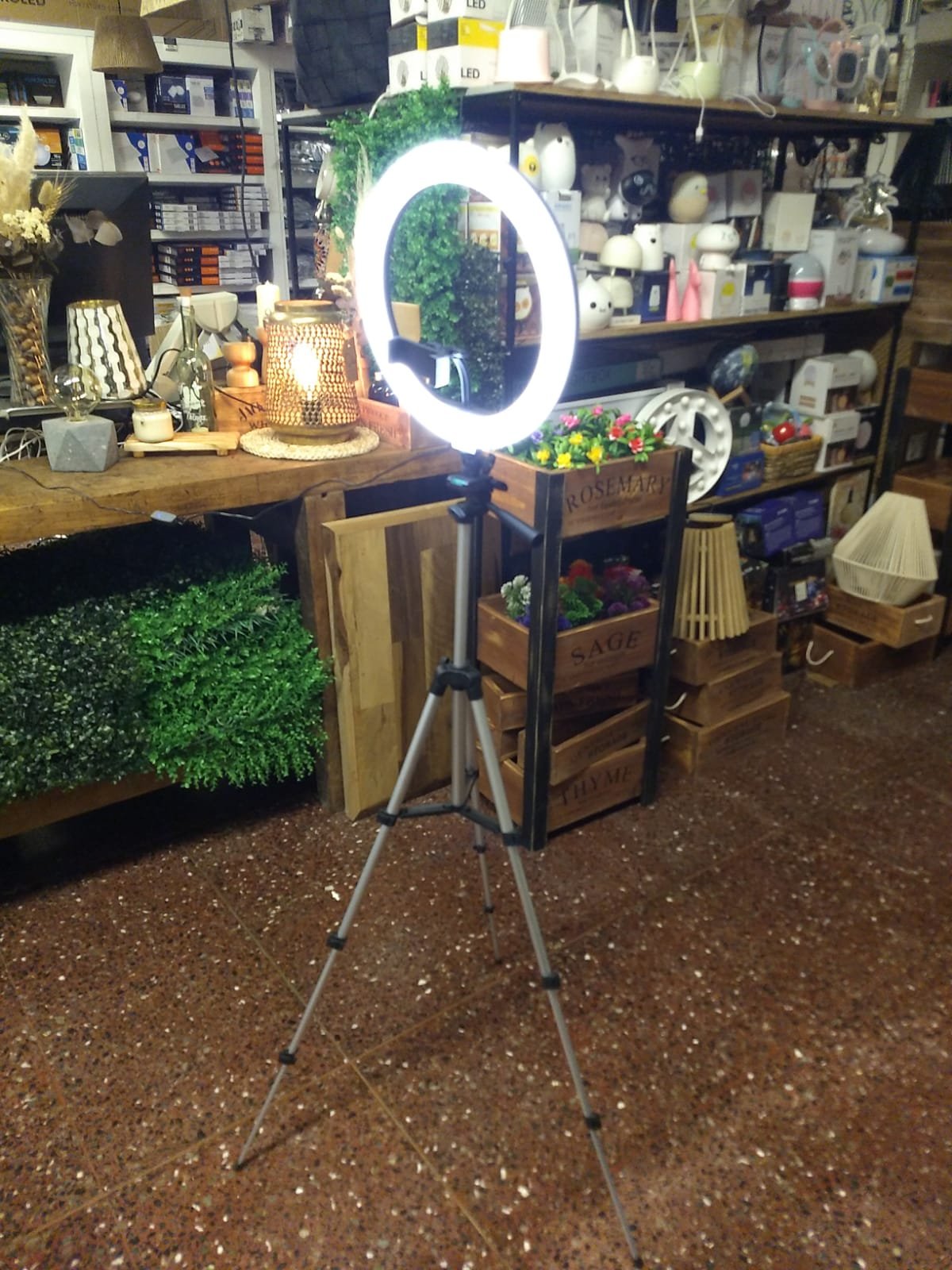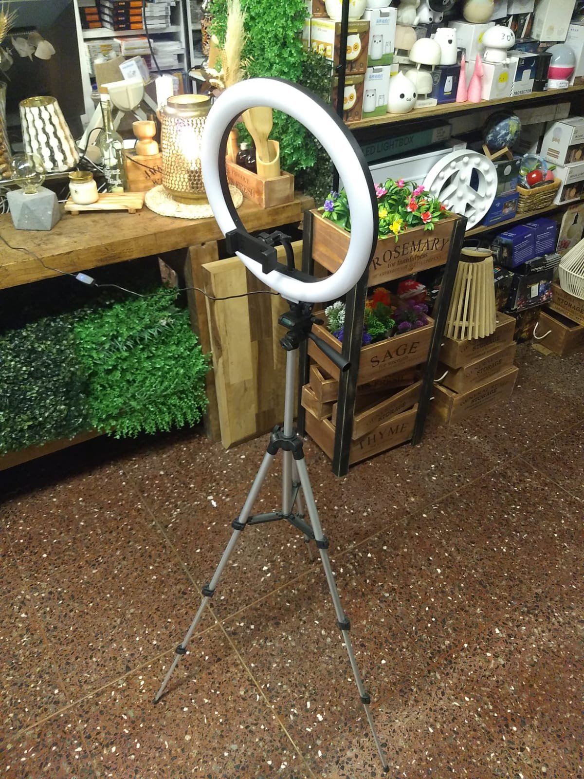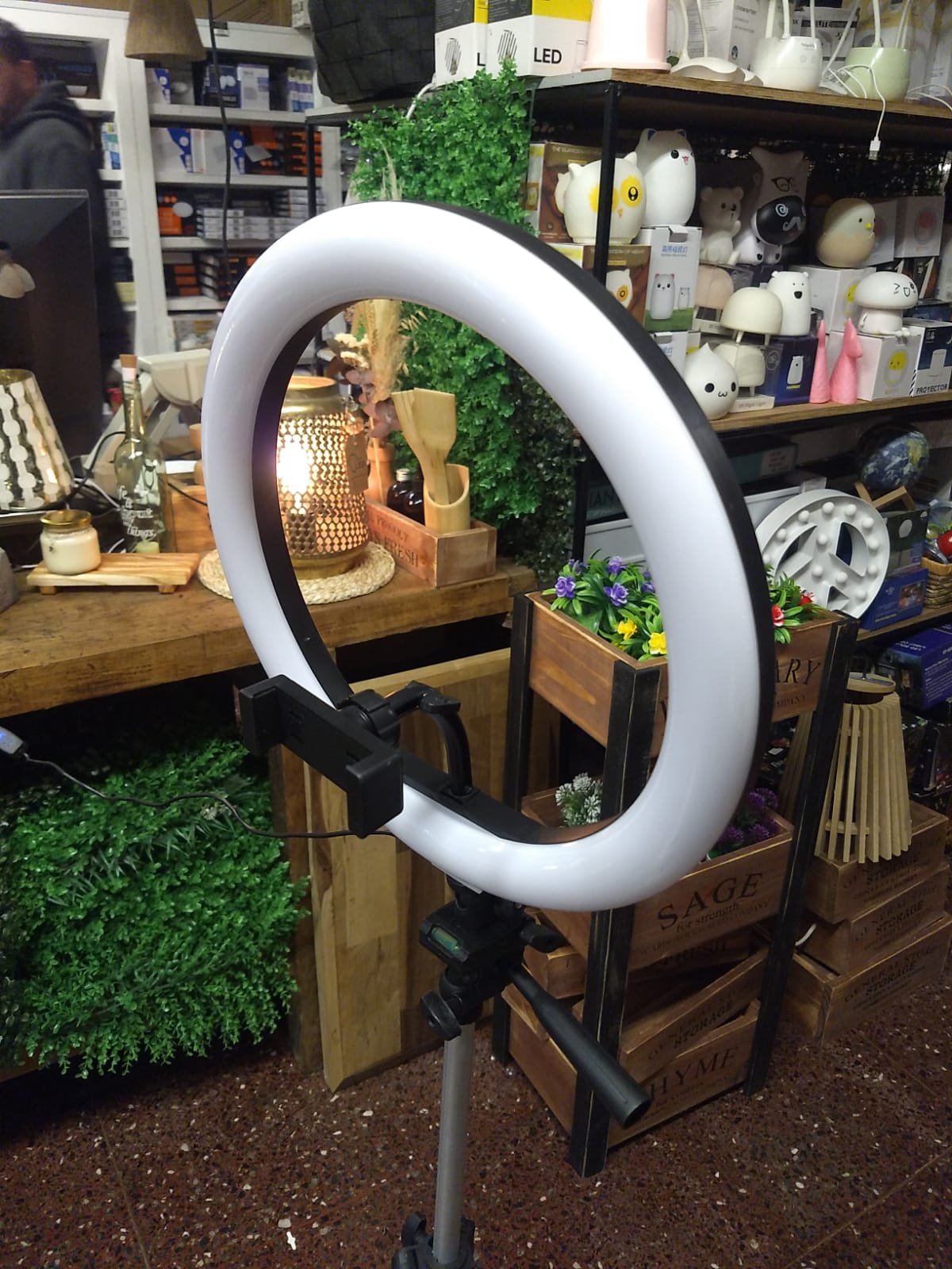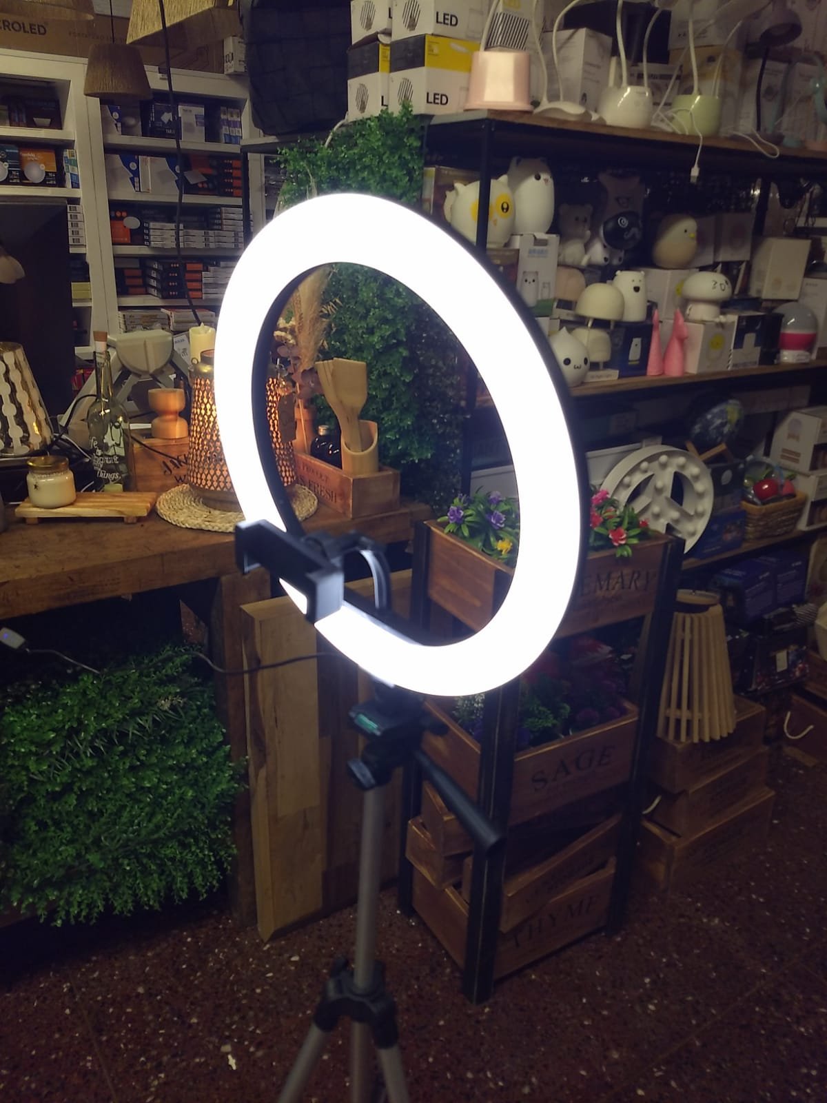 Aro led grande de 30 cm de diámetro con control de intensidad y cambios de 3 tonos de temperatura de luz. Con porta smartphone. Conexión por usb