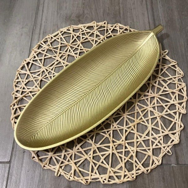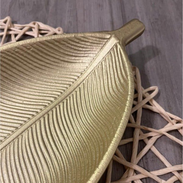 Bandeja / Centro de Mesa Hoja de Madera dorada grabada grande