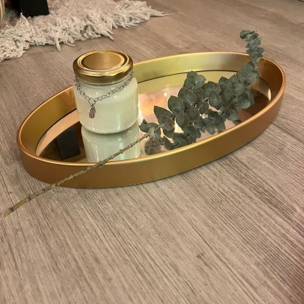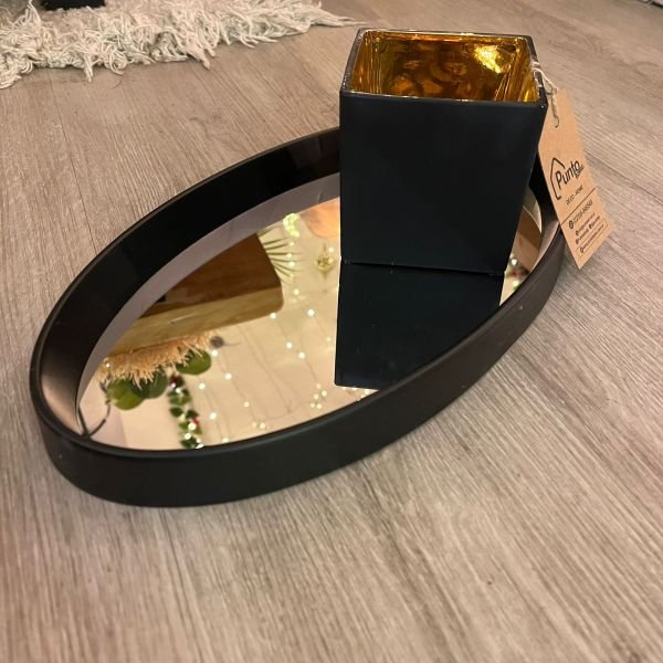 Bandeja con espejo de vidrio ovalada en blanco, negro o dorado de 37 x 20 cm