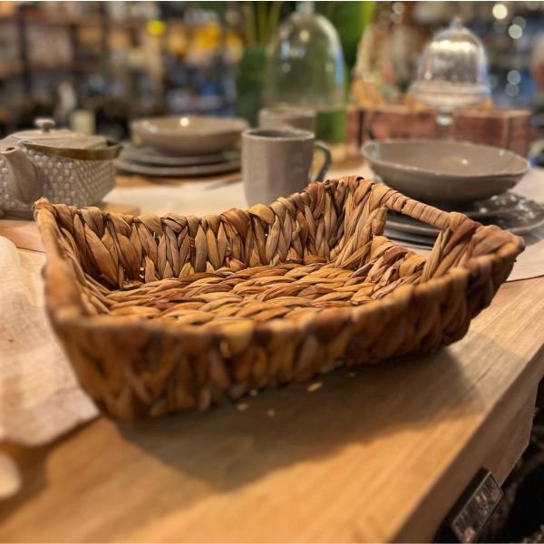 Bandeja de seagrass modelo grande con estructura de metal y asas de 25 x 19 cm
