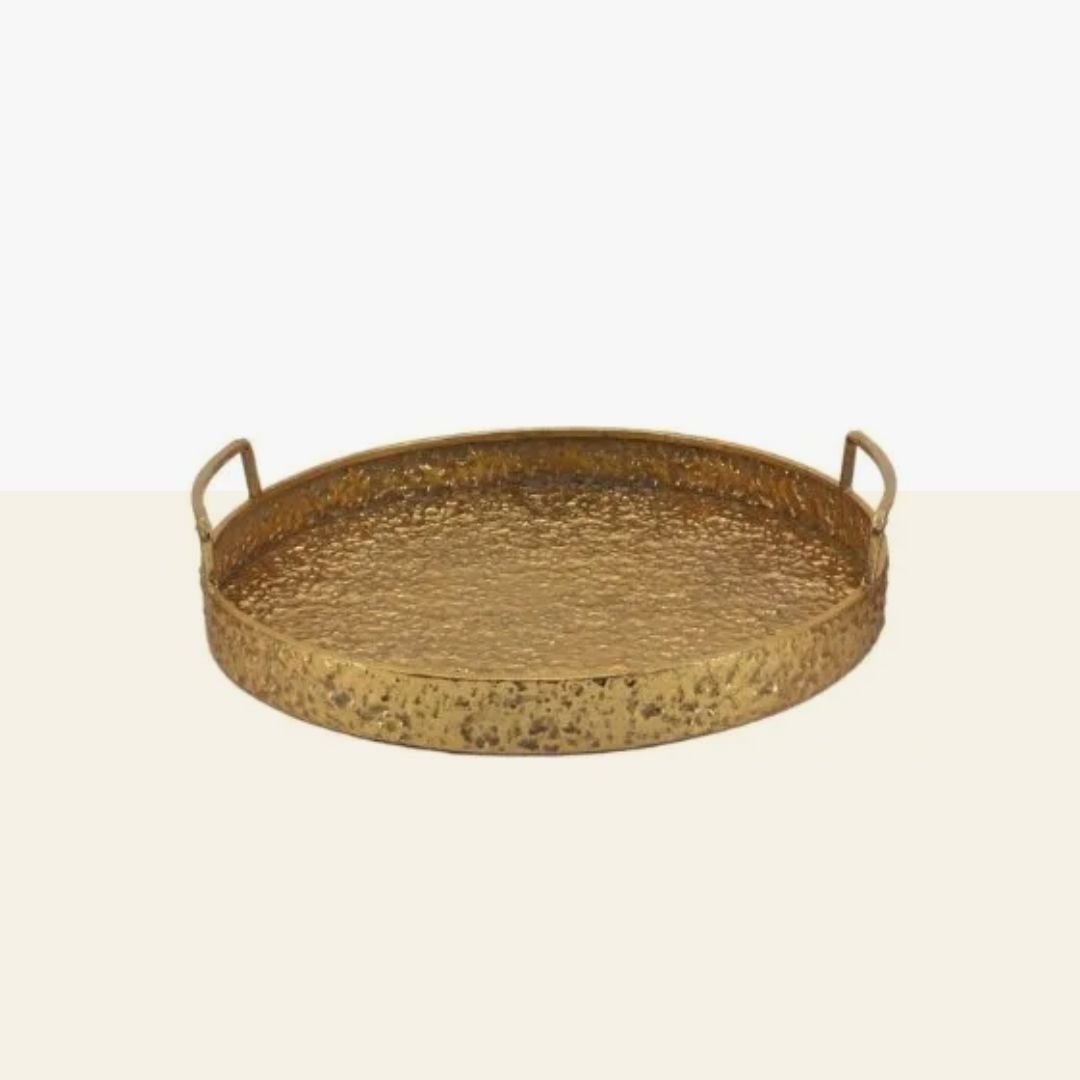Bandeja de madera vintage con manijas de metal de 42 x 30 cm