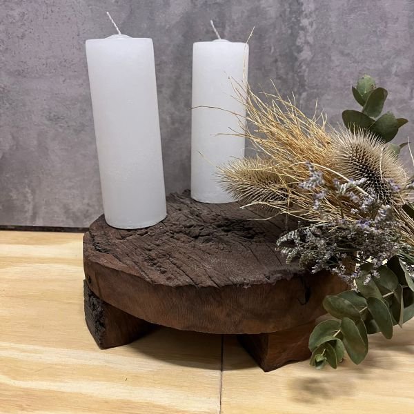 Base de apoyo artesanal redondo de madera de quebracho rustico 24 x 7 cm
