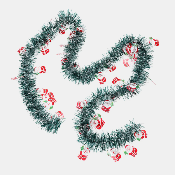 Guirnalda Navideña con Papá Noel Decorativo Dale un toque festivo a tu hogar con esta encantadora guirnalda navideña verde adornada con figuras de Papá Noel. Ideal para decorar árboles, ventanas, marcos de puertas o mesas, aporta brillo y alegría a cualquier espacio.