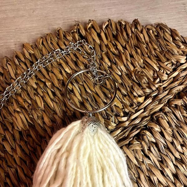 Borla sujeta cortina colgante de hilos de algodón Natural con dije y cadena de metal en versión plateada o bronce