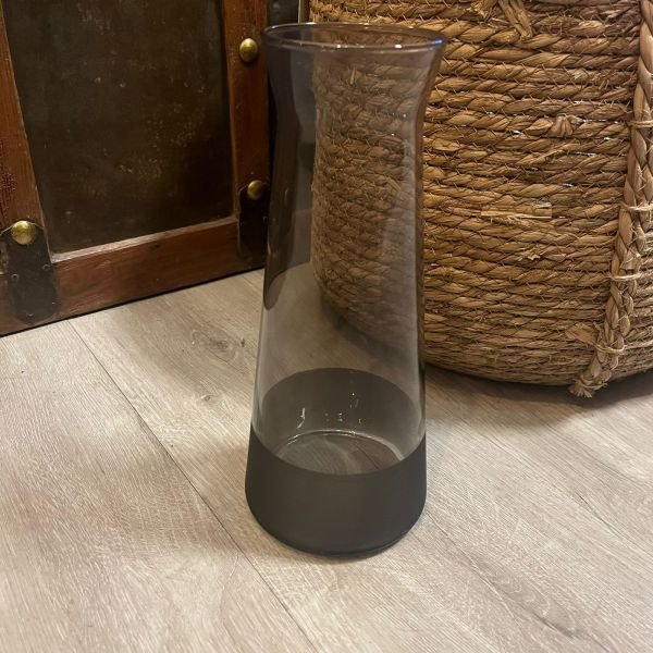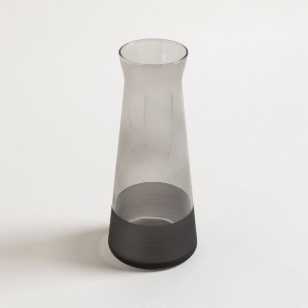 Botellón realizado en vidrio gris de excelente calidad. Diseño sofisticado e innovador, detalle esmerilado en su base. Ideal para vestir una mesa de estilo moderno.