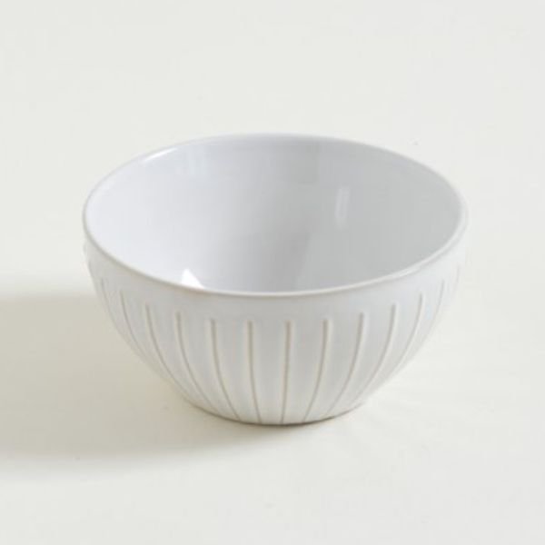 Bowl realizado en cerámica de color blanco con diseño de líneas. Estilo de vajilla rústica para combinar con nuestros cubiertos de color plateado. Ideal para vestir una mesa descontracturada y clásica.