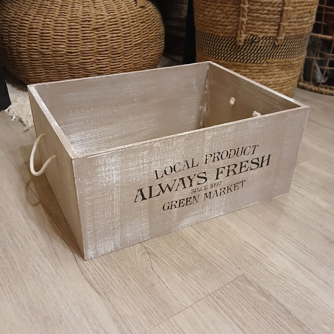 Cajon de madera vintage patinado con manijas de soga de 30 x 40 x 18 cm