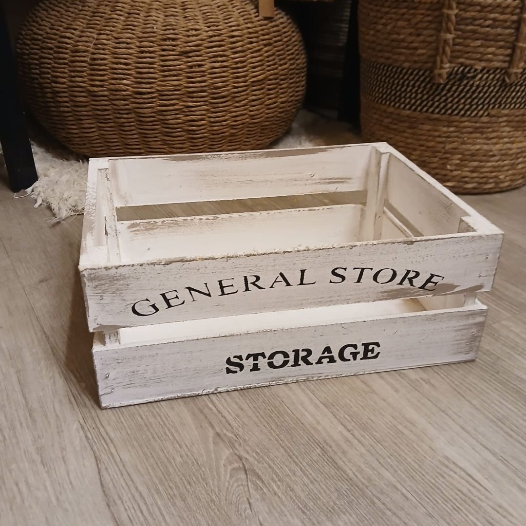 Cajón de madera vintage patinado estilo verdulero