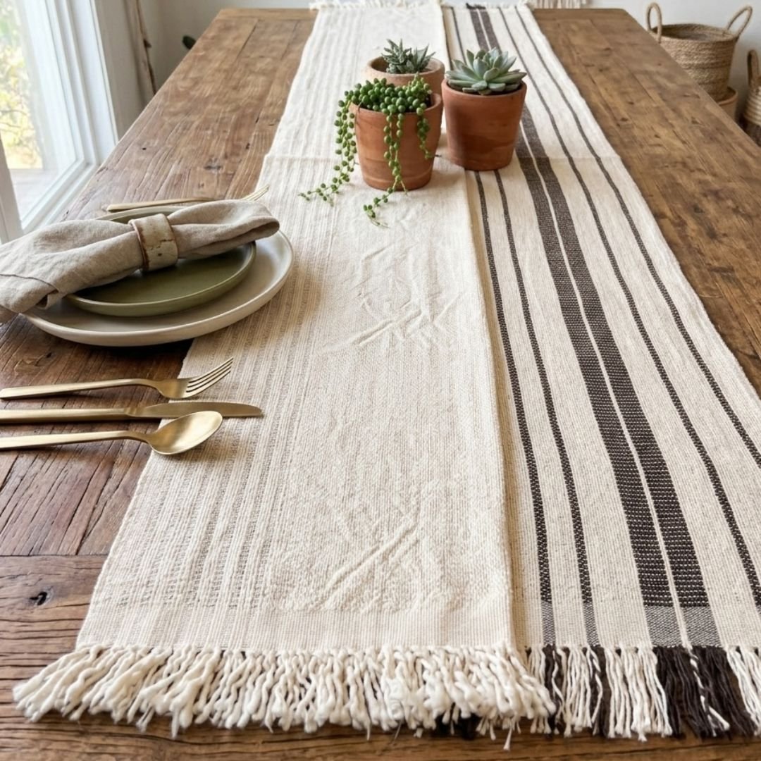 Camino color crudo o combinado rayado fabricado en 100% algodón tejido en telar estilo rustico.