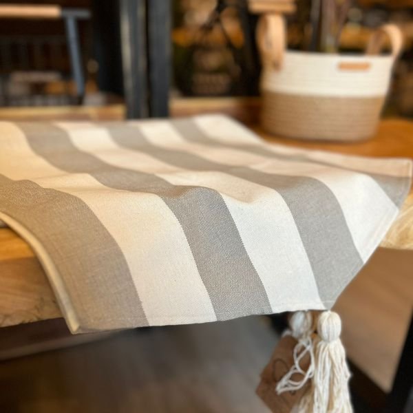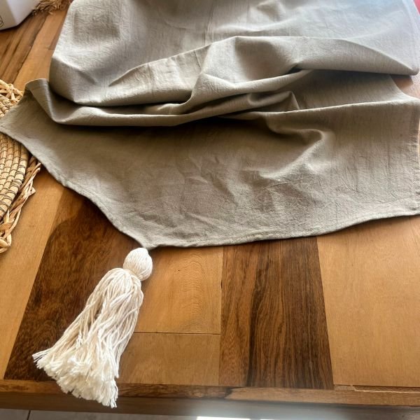 Camino de tela tusor de 1,8 mts y decoración con borlas de algodón crudo