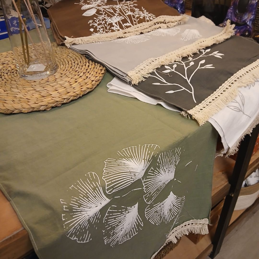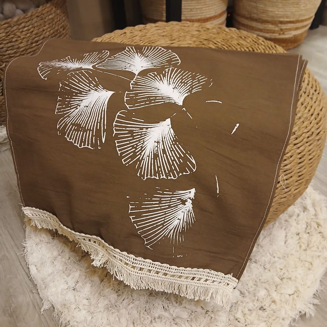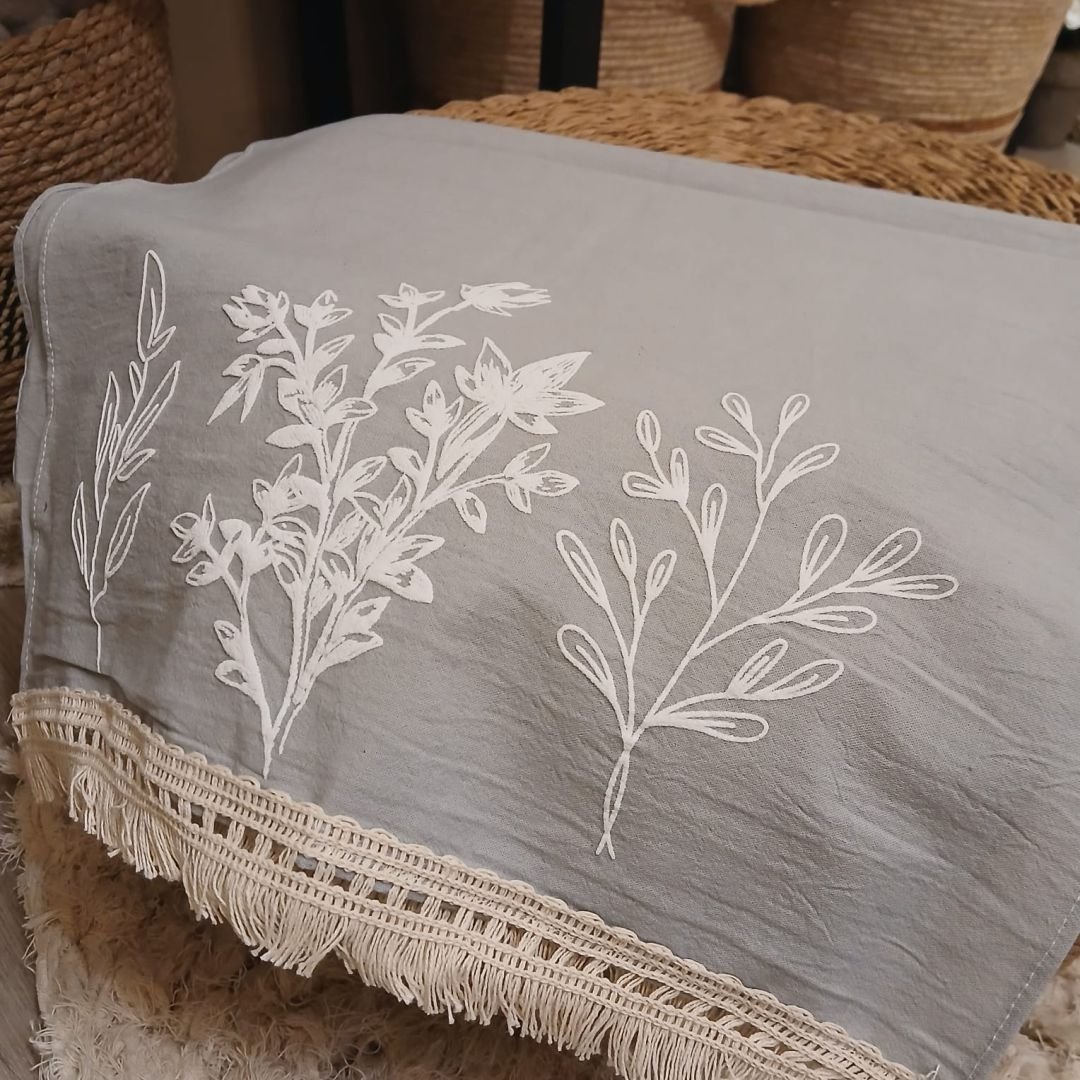Camino de tela tusor estampada con relieve de 150 x 40 cm