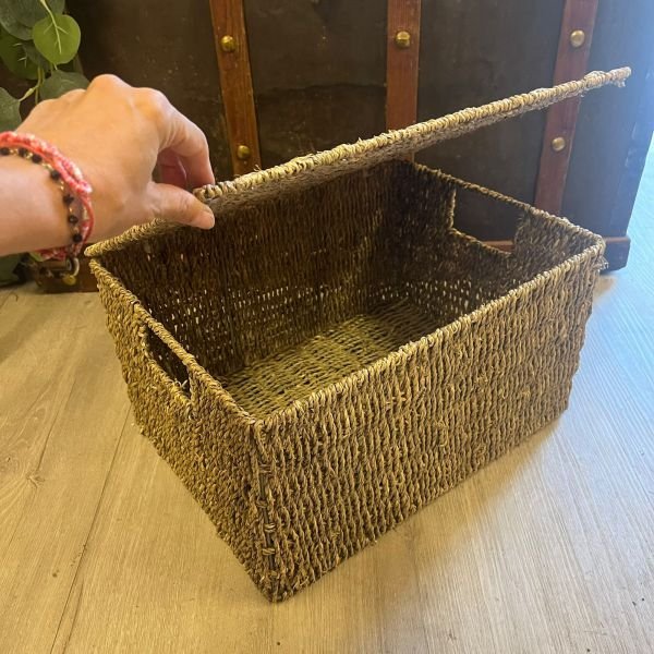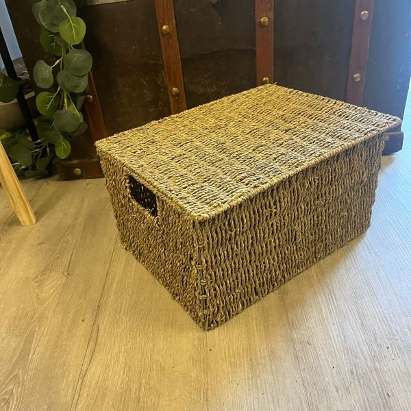 Canasto rectangular de seagrass con tapa de 40 x 30 x 22 cm de alto