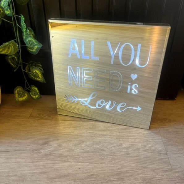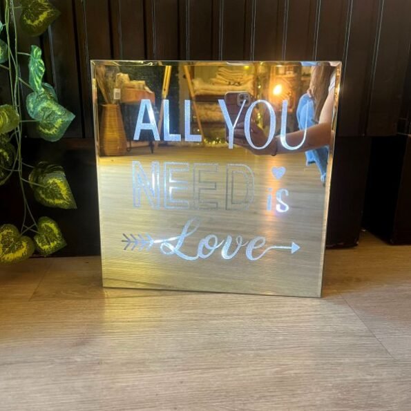 Cartel espejado retroiluminado con frase de 35 x 35 cm