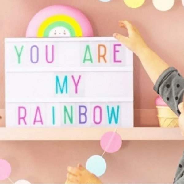 COLOR ROSA Y LETRAS EN MULTICOLOR