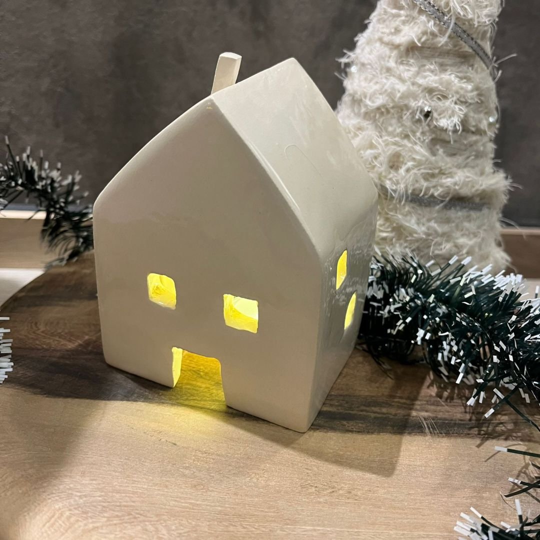 Casa de cerámica artesanal estilo nórdico grande de 9 x 9 x 13 cm aprox.