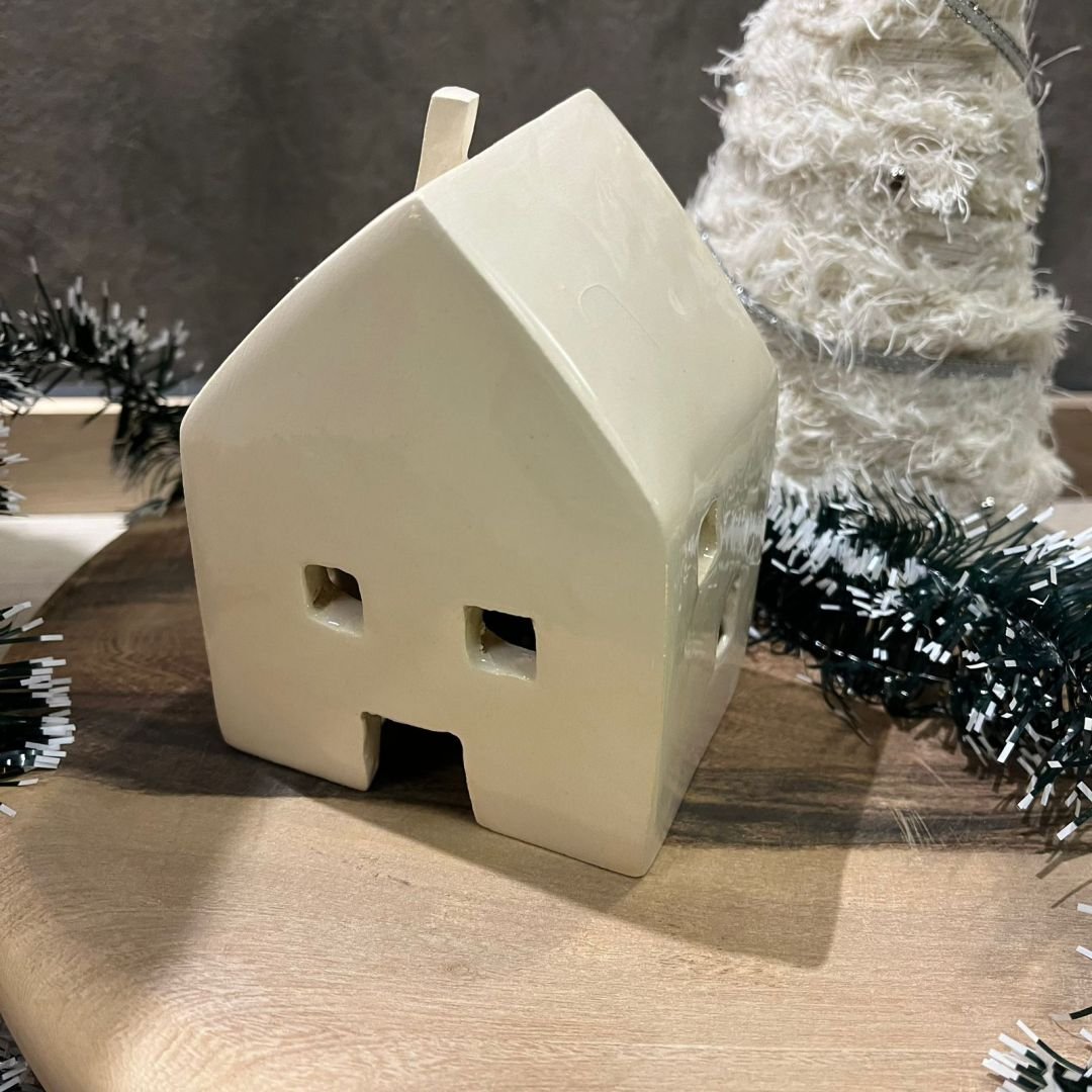Casa de ceramica artesanal estilo nordico grande de 9 x 9 x 13 cm