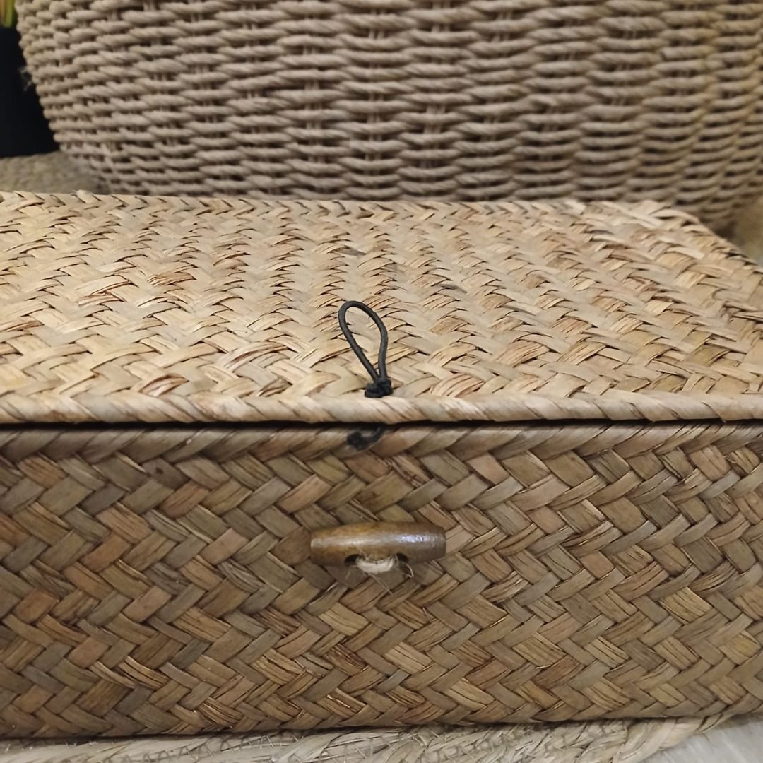 Cesto de bambú con tapa rectangular