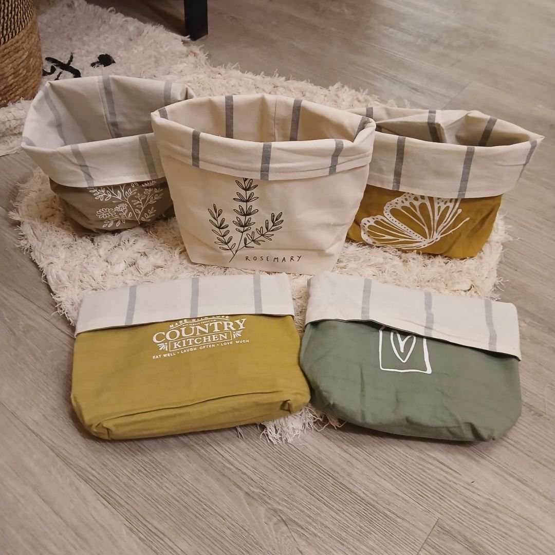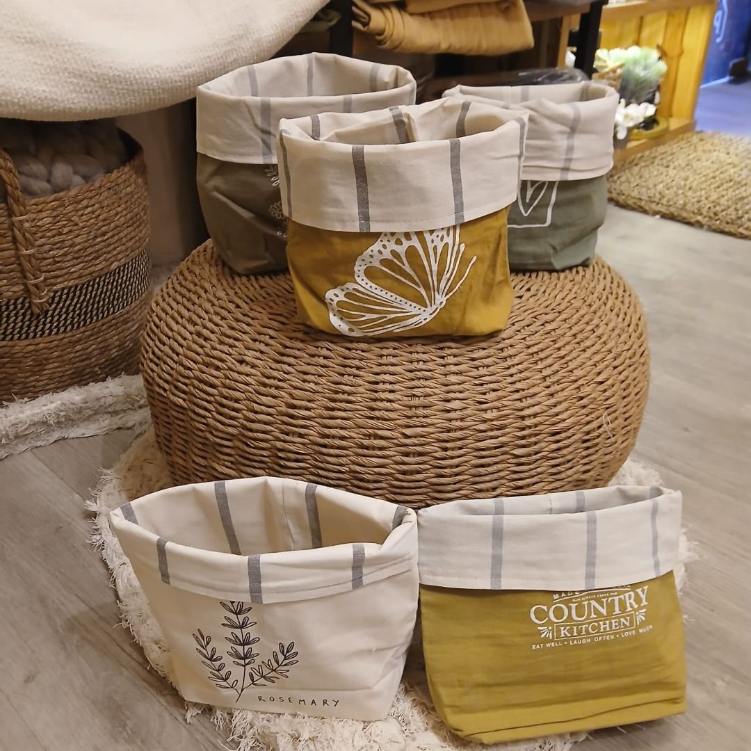 Cesto mediano de liencillo estampado de 18 x 10 cm
