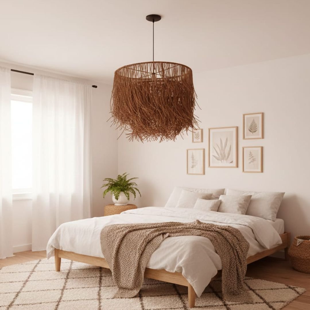 Colgante artesanal de hilos kraft modelo Mérida en forma de cascada de flecos.