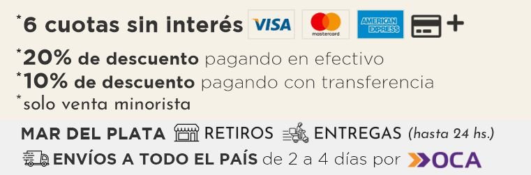 6 cuotas s/interés de $1498 -20℅ off en efectivo $7192