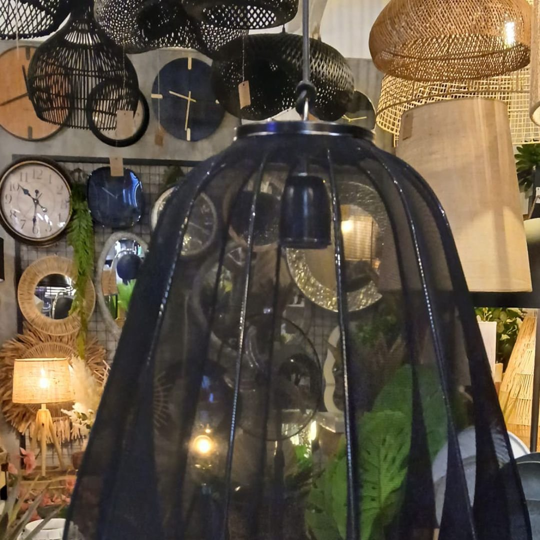 Colgante artesanal de microtul negro modelo Guiza Cone de 40 x 55 cm
